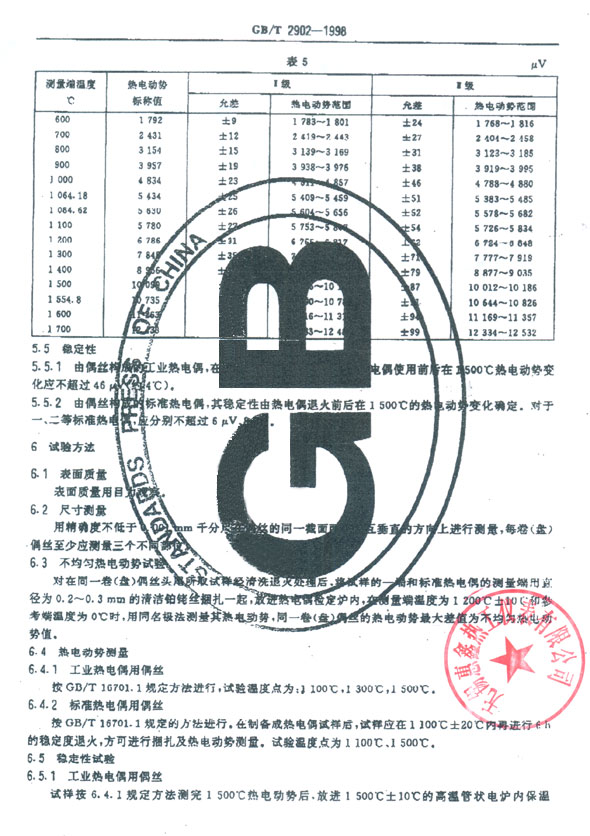 B分度號 鉑銠30-鉑銠6熱電偶標準